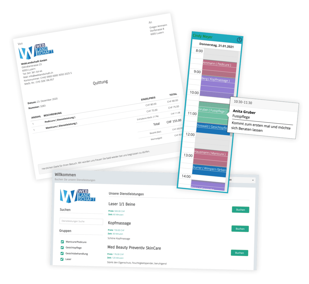 Verwalten Sie schnell und einfach von überall all Ihre Termine, Kunden, Produkte, Zahlungen, Gutscheine, Abonnements und mehr.